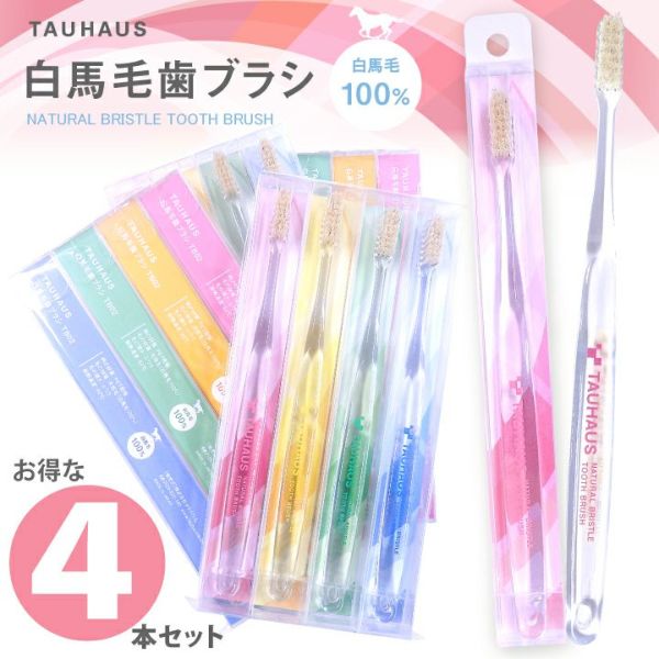 TAUHAUS 『選べる4色!天然毛(白馬毛)歯ブラシ《4本セット》』
