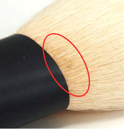 TAUHAUS のメイクブラシは、原毛の毛先をカットしない伝統技術にて丁寧に手作りしていますので、大量生産品のように毛先がチクチクするようなケースは稀です。
