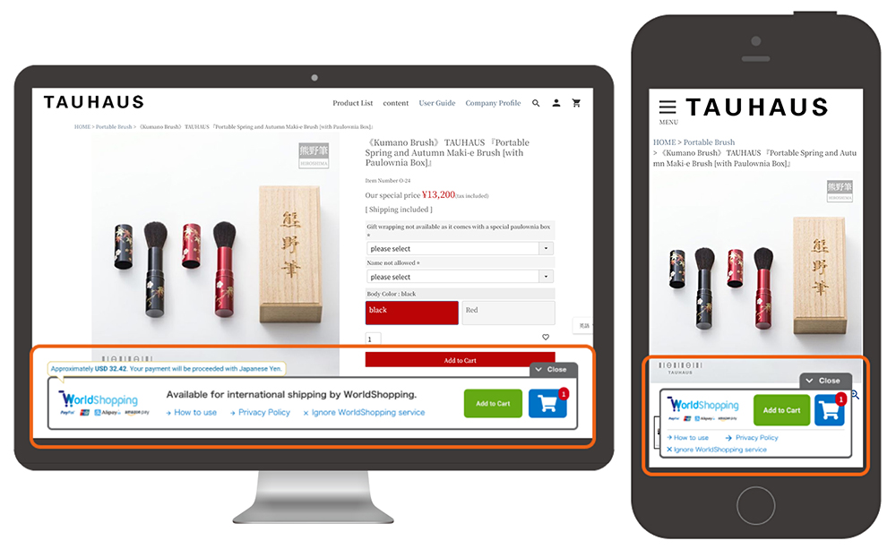 - When you access the website from overseas, the “WorldShopping Cart” will be displayed automatically.
